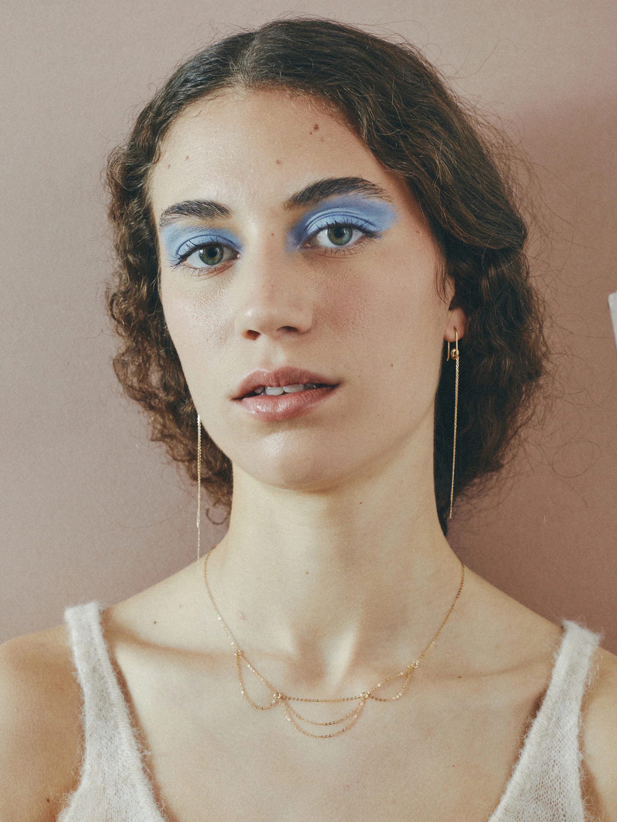 Fine 9k gold chains falling in three soft arcs. A light, fluid composition that plays with movement and line.